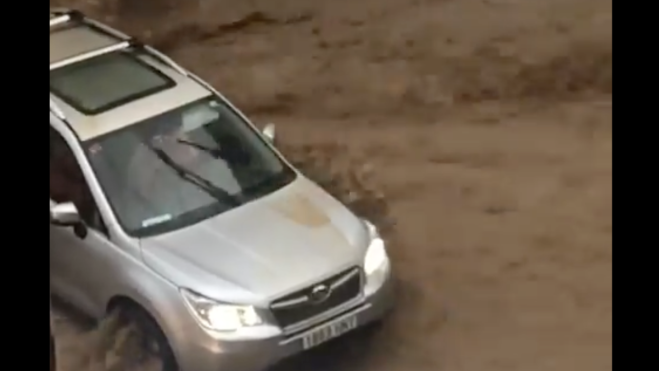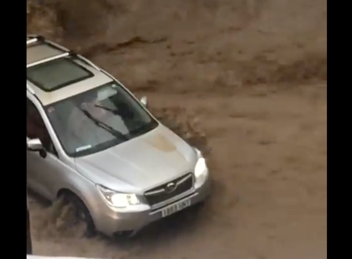 Algunes de les imatges més espectaculars d'aquesta tarda les trobem a Arenys de Mar, on les precipitacions han deixat imatges de vehicles arrossegats pels forts torrents.