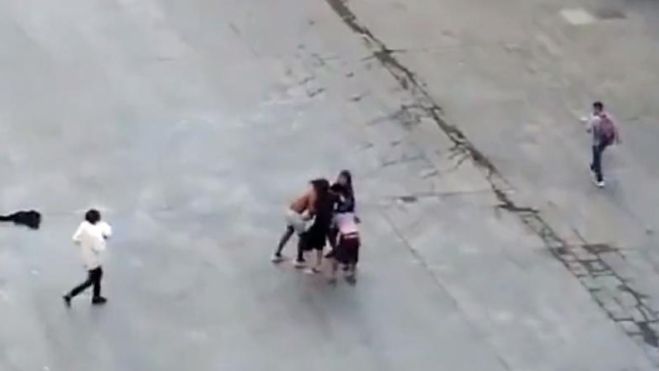 Tal com es pot veure en les imatges, un grup de quatre joves es barallen a plena llum del dia. Un home intenta separar-los, però en qüestió de pocs segons es continuen agredint, mentre que les persones que estan per la zona continuen passejant com si res.