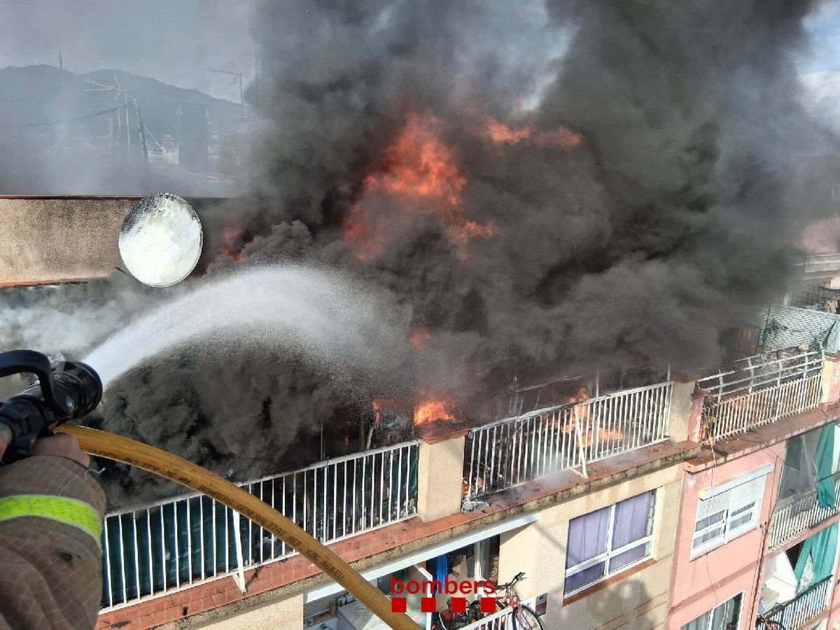 Un foc originat al número 11 del carrer Núria ha afectat dos pisos i ha obligat a traslladar una persona per inhalació de fum
