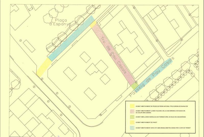 L’àmbit d’actuació del projecte és la zona compresa entre la Travessia del Passeig Pau Casals, la plaça d’Espanya, el Carrer Ample i el Passeig Pau Casals. La situació i estat actual de la xarxa de pluvials de la Travessia Pau Casals –que discorre en paral·lel al Carrer Ample- és actualment deficitària per desenvolupar les tasques per les quals va ser dissenyada, a causa d’unes fuites que provoquen filtracions cap al mateix carrer, així com als edificis confrontats.