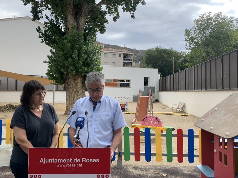 Aquest matí l’alcalde de Roses i regidor d’Urbanisme, Josep M. Martínez, i la regidora d’Ensenyament, Maria Àngels Arjona, han presentat a l’escola Narcís Monturiol el projecte de naturalització dels patis de les escoles públiques del municipi. Es tracta de la proposta guanyadora de l’edició 2021 dels Pressupostos Participatius en què varen votar més de 900 rosincs i rosinques, que suposarà el condicionament d’una superfície total de 9.865 m² de patis escolars, introduint elements naturals i jocs concebuts com espais educatius i de lleure.
