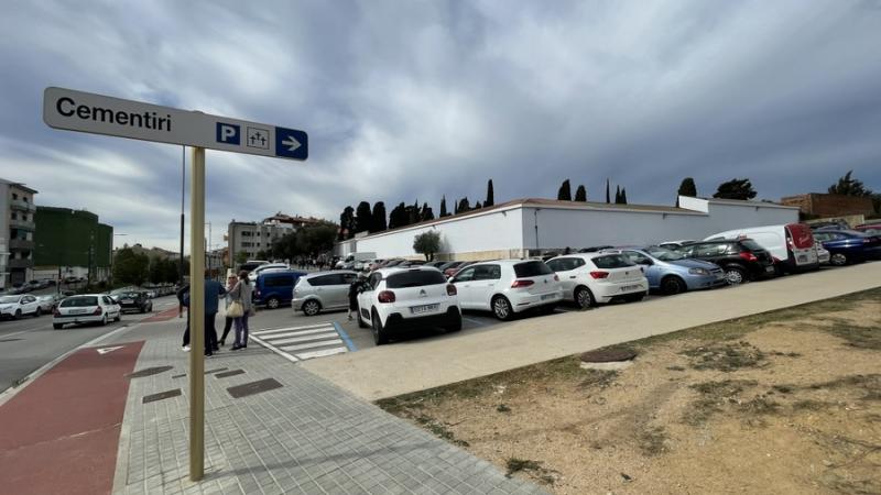 Una altra mesura ha estat tenir obertes les dues portes d’accés, tant la del Carrer Santa Cecília com la que hi ha al costat esquerre, la del Carrer Santa Maria on hi ha plantades oliveres. L’espai entre la porta del cementiri i les pilones negres s’ha reservat per a situacions especials, així com pels vehicles d’emergències que hagin d’entrar per fer un servei, així com les persones amb dificultats de mobilitat.