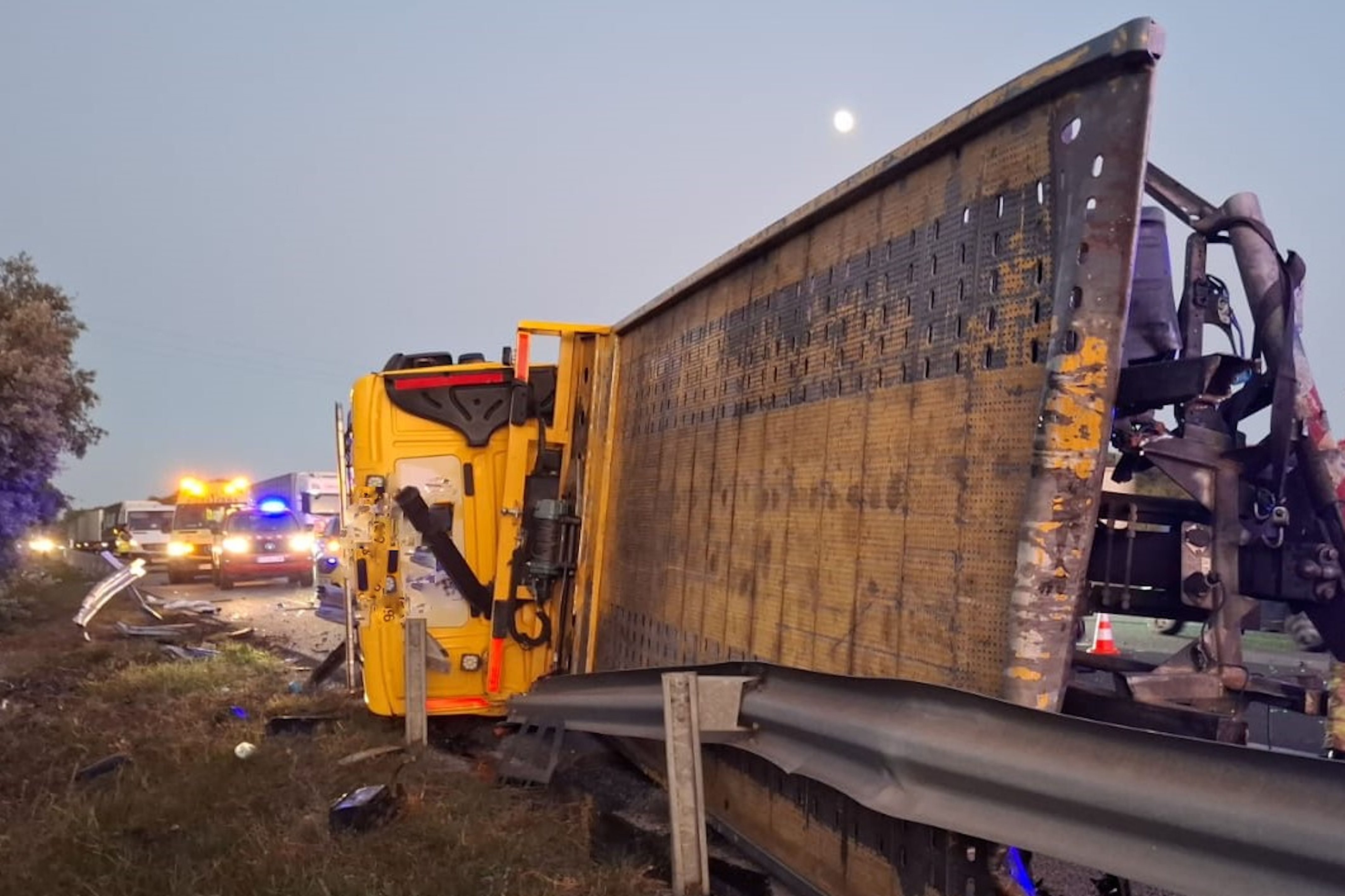 L’home, que conduïa un camió de 40 tones, va xocar contra una grua que assistia una furgoneta avariada i, després de l’impacte, el vehicle va fer la tisora, deixant la cabina i la caixa en forma de V.