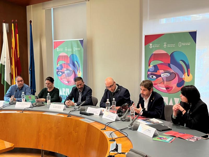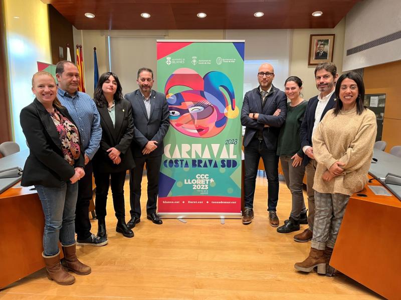 Els alcaldes de Blanes, Lloret de Mar i Tossa de Mar, acompanyats dels regidors responsables dels tres Ajuntaments, han presentat avui a la Sala de Plens de l’Ajuntament de Lloret el cartell i programació del Carnaval de la Costa Brava Sud.