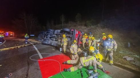 Ahir a la nit, un accident de trànsit va tenir lloc al quilòmetre 64,1 de l'AP-7, a l'altura de Sant Julià de Ramis, quan un camió cisterna que transportava glucosa va bolcar lateralment. El conductor va quedar atrapat a l'interior de la cabina, de manera que els Bombers de la Generalitat van haver de realitzar maniobres d'excarceració per alliberar-lo.