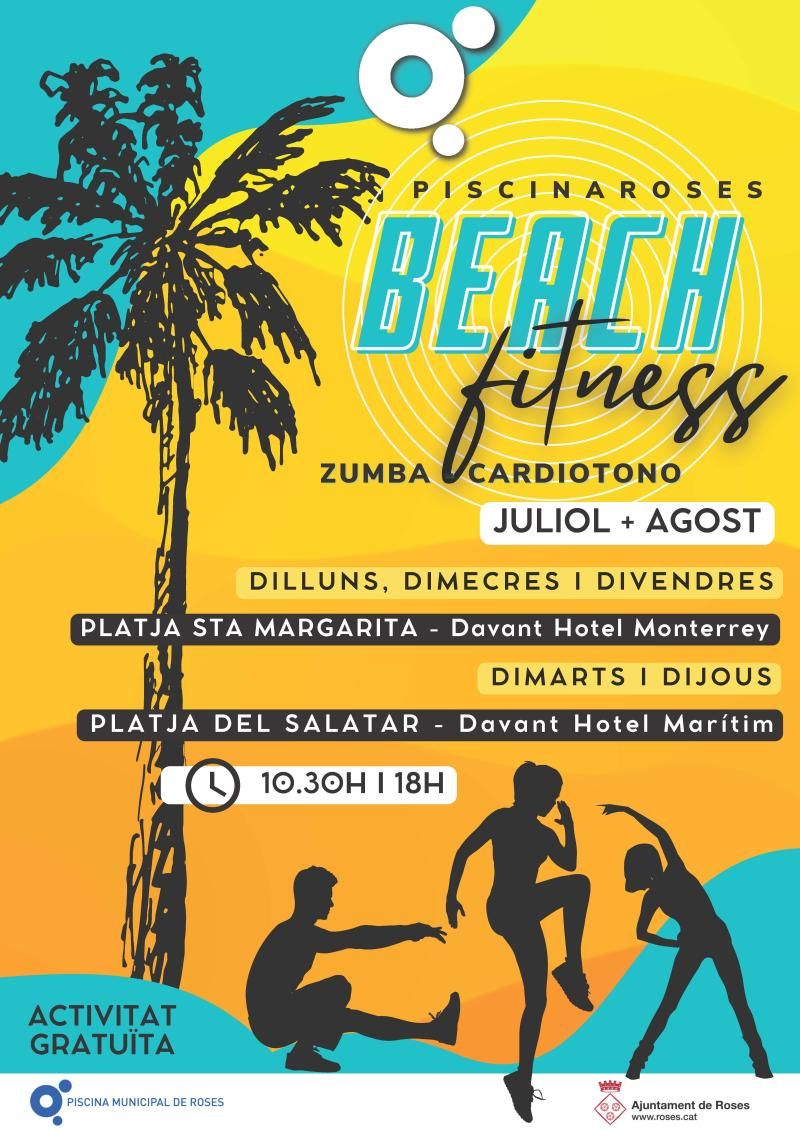 Durant els mesos de juliol i agost l’Ajuntament de Roses programa classes gratuïtes de dinamització esportiva a la platja, amb sessions de fitness que es desenvoluparan diàriament en horari de matí i tarda de dilluns a divendres. Aquestes activitats, hereves de l’Aeròbic Platja que es duia a terme a Roses fins a la irrupció de la pandèmia, s’organitzen conjuntament entre l’Àrea d’Esports i la Piscina Municipal i estaran dirigides per dues monitores de la Piscina.