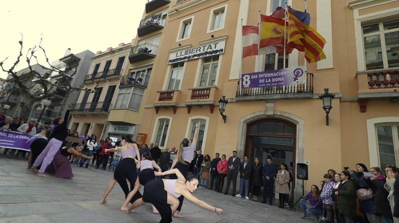 Abans de la lectura del manifest, l’acte es va encetar amb la valuosa aportació que van fer unes joves ballarines de l’Escola de Dansa Míriam Beltran. Van interpretar una emotiva peça de Manuel Carrasco: ‘Mujer de mil batallas’ davant el nombrós públic que omplia el Passeig de Dintre. L’emoció va traspassar el silenci amb què es va gaudir de la peça, trencant en un agraït aplaudiment per aquest artístic regal visual que va servir de preàmbul a l’acte institucional.