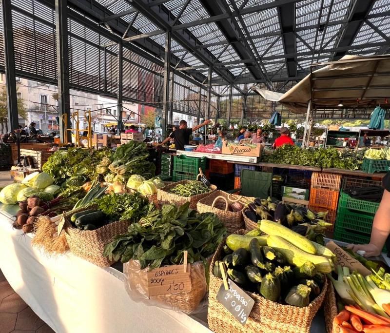 El mercat, que se celebra el dimarts, dijous i dissabte a la plaça Catalunya i la Plaça del Gra té actualment 53 parades repartides entre les dues ubicacions.