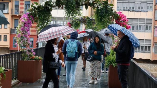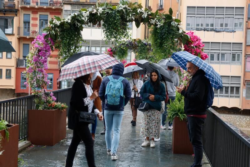 La pluja intermitent ha estat la principal protagonista en l'arrencada de la 68a edició de Girona Temps de Flors. Una edició centrada en la sequera que pateix Catalunya i que ha fet que el certamen s'adaptés a aquesta realitat.