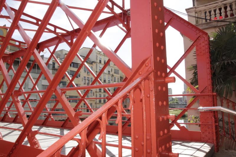 El pont de les Peixateries Velles de Girona ja presenta nova imatge. Aquest dimecres l'Ajuntament ha acabat els treballs de manteniment de la infraestructura, popularment coneguda com el Pont del Ferro, i que permet travessar l'Onyar des del carrer Santa Clara fins a la Rambla.