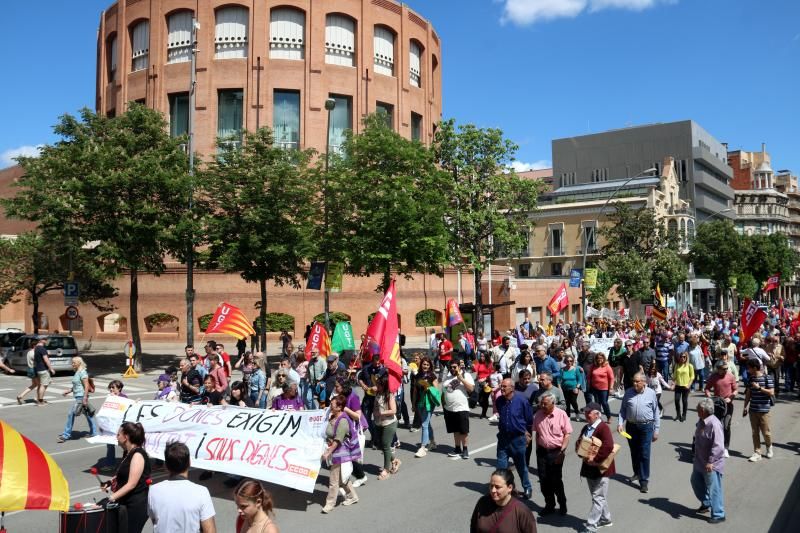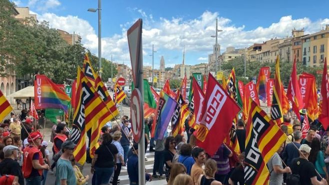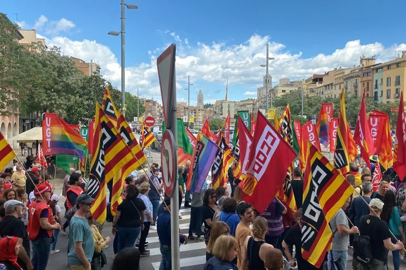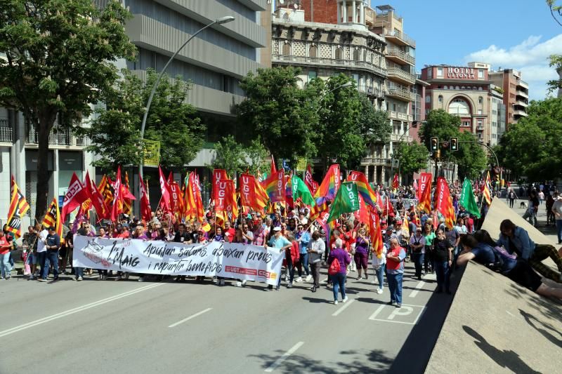 Un miler de persones s'han manifestat aquest dilluns a Girona en la mobilització convocada per CCOO i UGT per l'1 de Maig. La marxa ha arrancat al migdia de la plaça Independència i ha avançat per Jaume I per acabar a la plaça del Vi, passant per davant de la seu de la Generalitat. Durant la marxa, han cridat proclames contra la inflació com "Volem arribar a final de mes" o "Salari estable, conveni digne".