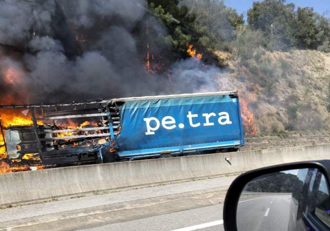 Per causes que s’estan investigant, dos camions han xocat per encalç, provocant un incendi de gran intensitat. Un dels vehicles ha cremat completament, mentre que l’altre ha quedat parcialment afectat, especialment la caixa.