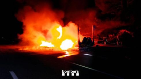 L'incendi d'un camió durant la nit obliga a tallar l'AP-7 a Girona