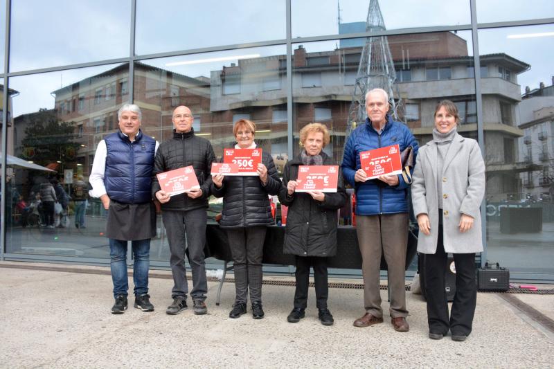 L’Anna Farjas d’Olot; l’Àngels Planella d’Olot; la Benvinguda Vencedoz d’Olot; en Rafa Fuentes d’Avinyó; la Tura Matemala de Begudà; la Maria Teresa Daró d’Olot; l’Assumpció Quintana i l’Anicet Reixach d’Olot han estat els i les guanyadores dels premis de la campanya de Nadal del Mercat. Cadascú ha obtingut 250 euros desglossats en diversos vals de 10, 20, 50 i 100 euros que podran bescanviar i gastar a les parades del Mercat d’Olot fins al mes d’abril.