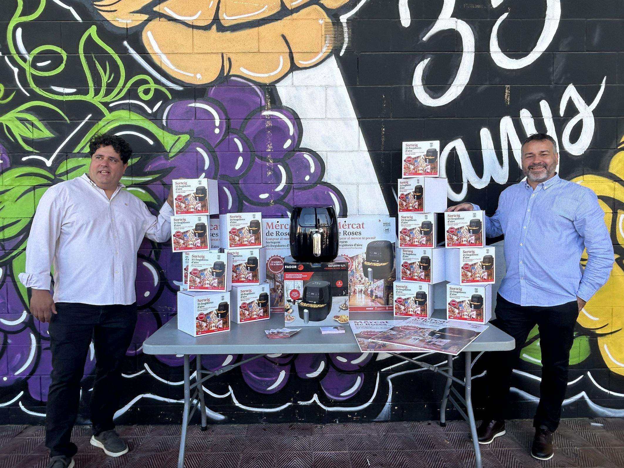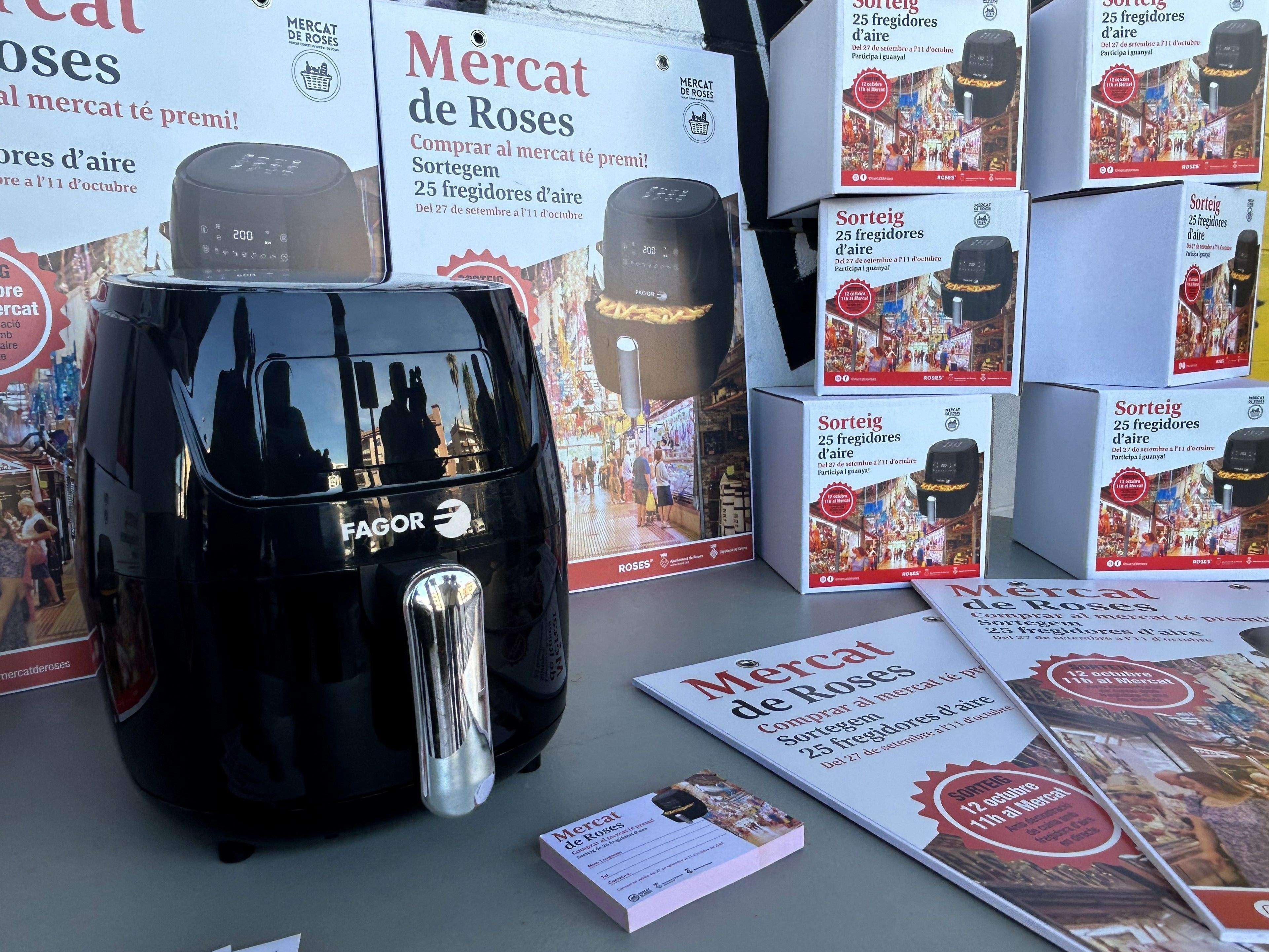Aquest matí el regidor de Promoció Econòmica de Roses, Fèlix Llorens, i el president de l'Associació Mercaroses, Santi Buscató, han presentat la nova campanya que tindrà lloc entre el 27 de setembre i el 10 d’octubre. Santi Buscató ha explicat la mecànica del sorteig: “entre aquestes dates i per cada compra realitzada (sense import mínim), els clients rebran una butlleta per participar en el sorteig de les 25 fregidores d’aire que, un cop omplerta, es podran dipositar en qualsevol de les urnes que es trobaran a les mateixes parades”.