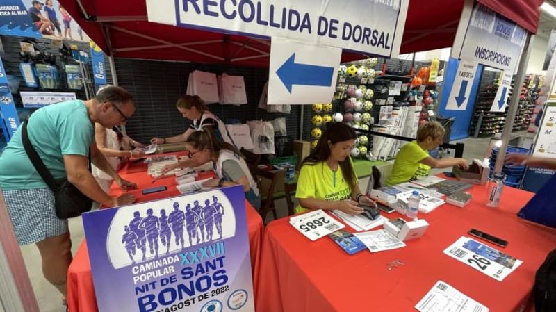 Una de les principals novetats de la XXXVII Caminada Nit de Sant Bonós 2022 que tindrà lloc demà dissabte és que es compta amb la col·laboració de la botiga Decathlon Blanes en el procés d’inscripcions. Durant tota aquesta setmana s’han pogut anar a recollir els dorals de les que s’han fet online, que ja han superat les 3.000 persones, però també dóna suport per fer inscripcions presencials.En aquest darrer cas, durant tota la jornada d’avui divendres s’estan podent fer a la botiga de Blanes. L’activitat ha començat a les 10 del matí i finalitzarà a les 1 del migdia pel que fa al torn matinal. Després, es reprendrà a les 4 de la tarda i continuarà fins les 8 del vespre. A partir d’aquí les inscripcions presencials ja es concentraran a l’Ajuntament de Blanes, on també hi continuarà el repartiment de dorsals i els obsequis que hi ha segons l’ordre d’inscripció que s’hagi fet.La jornada de demà dissabte a l’Ajuntament –que es repartirà entre la seva planta baixa i la Plaça dels Dies Feiners que hi ha al darrera de l’edifici- començarà a les 10 del matí i continuarà ininterrompudament fins les 10 de la nit o bé fins arribar al límit dels 5.500 inscrits com a màxim. Cal dir als qui els agrada deixar les coses fins a darrera hora que a partir de les 10 de la nit, mitja hora abans que comenci la caminada, ja no es farà cap nova inscripció ni es lliuraran més dorsals. Més informació: https://www.blanes.cat/docweb/