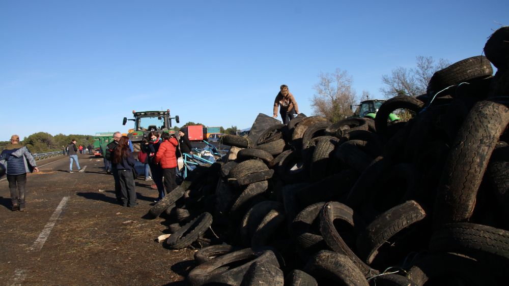 Aquest diumenge és el quart dia de protesta dels pagesos gironins a l'AP-7, a l'altura de Pontós (Alt Empordà).