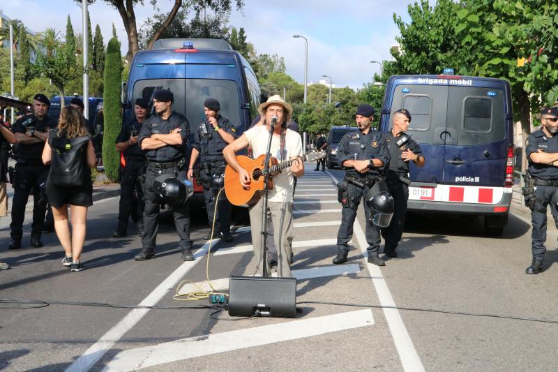 Els concentrats han recorregut a peu els escassos 500 metres que separen l'espai del darrer punt -a tocar del teatre municipal- on els Mossos els han permès arribar. En aquest punt, s'ha establert un fort desplegament policial amb diversos efectius i furgonetes de la Brigada Mòbil (BRIMO) i l'Àrea de Regional de Recursos Operatius (ARRO).