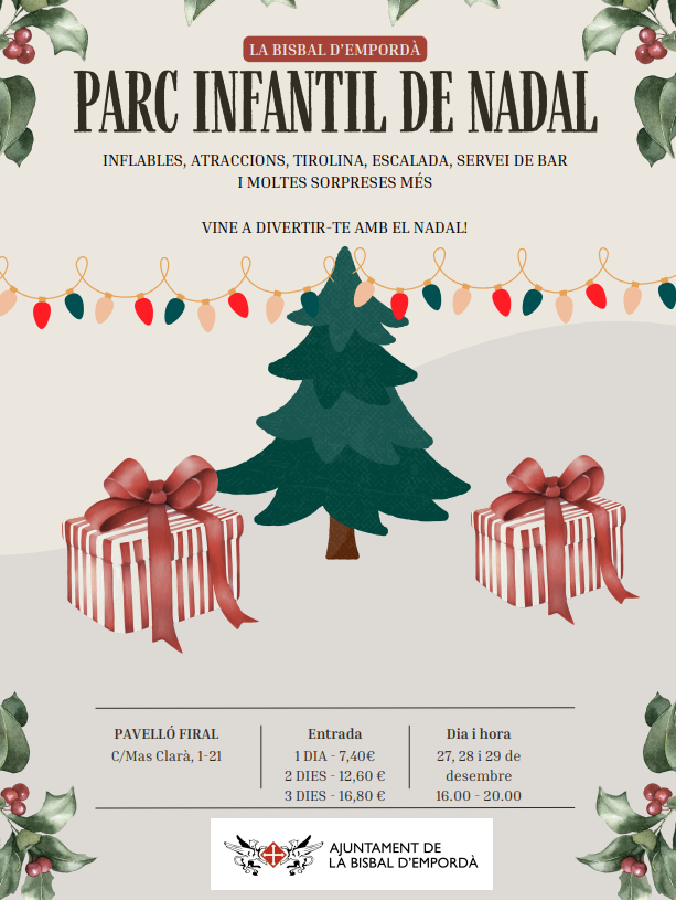 Després d’un any sense celebrar-se, torna al Pavelló Firal de la Bisbal el Parc Infantil de Nadal (PIN) els pròxims dies 27, 28 i 29 de desembre. Serà de 16 a 20 h, amb una àmplia varietat d’activitats i entreteniments per a la mainada: inflables, atraccions, ludoteca, tirolina, escalada, activitats d’aventura i moltes sorpreses per passar una gran tarda familiar.