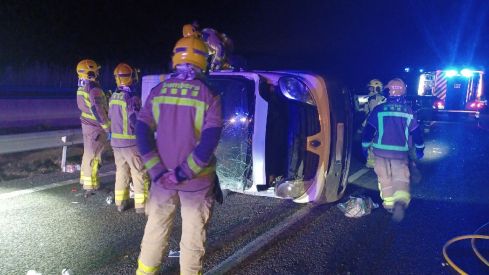 Una furgoneta va bolcar lateralment aquest dimarts a la nit a l’autopista AP-7, a l'altura del terme municipal de Biure. L’avís de l’accident es va rebre a les 22.24 hores.