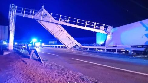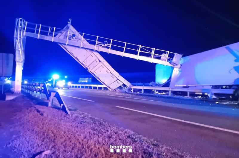 Els Bombers de la Generalitat, que han rebut l'avís de l'accident a les 18.52 hores, han mobilitzat cinc dotacions i han hagut d'excarcerar el conductor. El camió ha topat amb la infraestructura metàl·lica d'un senyal de trànsit situat sobre la via que ha cedit. S'està desviant el trànsit per la sortida 500.