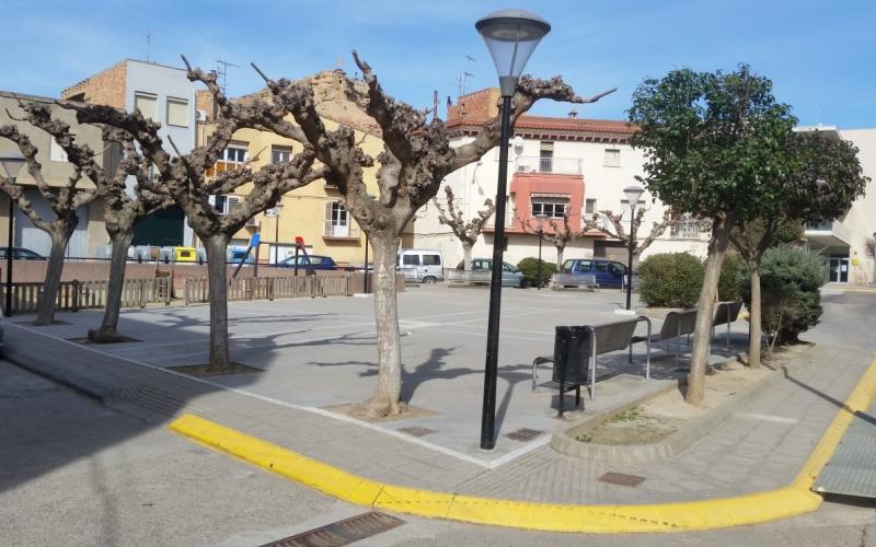 També es contempla la substitució de les lluminàries, bancs, i papereres existents, incorporar arbres al perímetre de la plaça -a la zona on actualment hi ha el sorral-, i delimitar el perímetre de la nova zona de jocs mitjançant una tanca formada per tubs metàl·lics de 60 centímetres d’alçada.