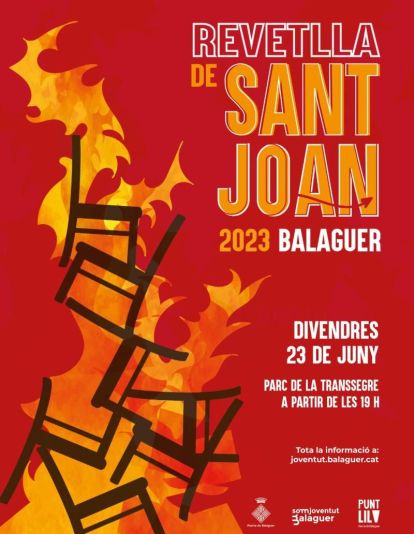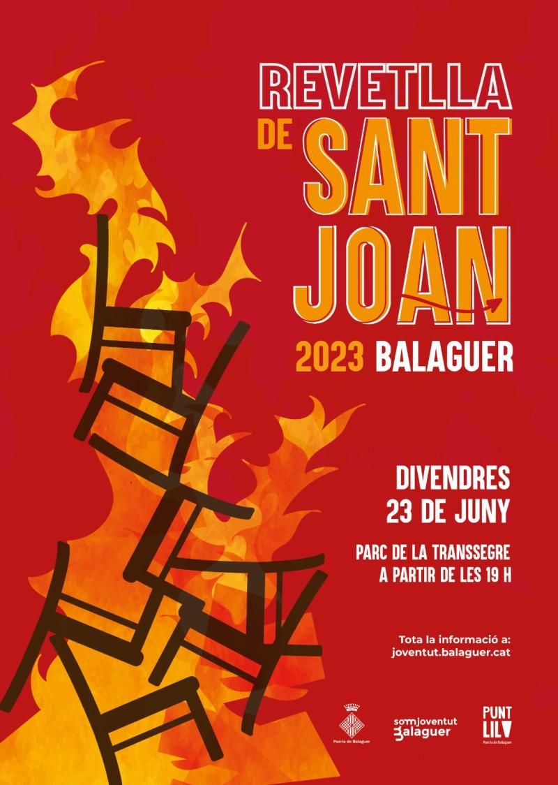 Els actes de la revetlla començaran el dijous a les 18 h de la tarda amb una festa Holi, seguida d’un bany d’escuma a la plaça del Morter. L’endemà dia de la revetlla a les 19 h el Club Ciclista Balaguer portarà la Flama del Canigó al parc de la Transsegre. A les 22 h es farà la lectura del manifest a càrrec del Ball de Bastons del casal Pere III, i després la cantada d’havaneres amb el grup Cavall Bernat. Durant l’espectacle s’oferirà als assistents coca de sant Joan i rom cremat.