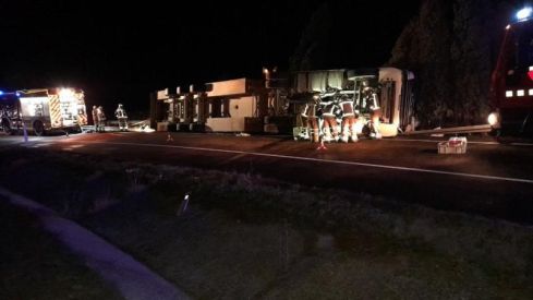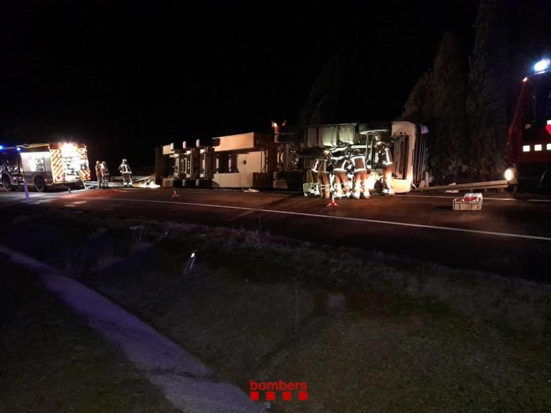 Els fets han tingut lloc a l'alçada d'Albatàrrec, on el conductor va resultar ferit. Els treballs s'han allargat fins a la matinada a causa dels animals que portaven i la retirada del camió.