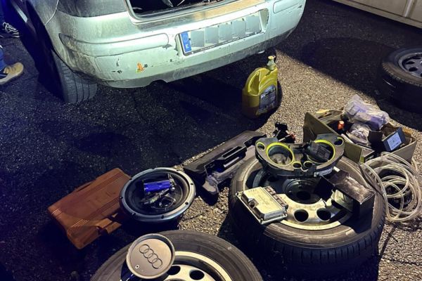 Diverses dotacions van iniciar la recerca i poc després una patrulla va observar el vehicle circulant a gran velocitat per l’A-2 en direcció a Lleida. Els agents van detenir el cotxe i van comprovar que dins hi viatjaven els cinc sospitosos, que tenien les mans tacades de greix. Al vehicle també es van localitzar les rodes robades amb els cargols corresponents i eines per desmuntar-les.