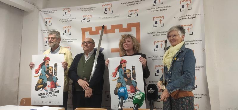 La Festa de Moros i Cristians, que tindrà lloc en diferents espais de la ciutat entre el dissabte 18 de maig i el diumenge 19, ha estat presentada per la regidora de cultura de l'Ajuntament de Lleida, Pilar Bosch; el president de l'Associació de la Festa, Josep Lluís Gàzquez Pons; i els capitals dels dos bàndols Dolors Carulla (saida mora) i Josep fuentes (comte cristà).