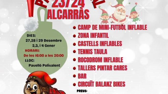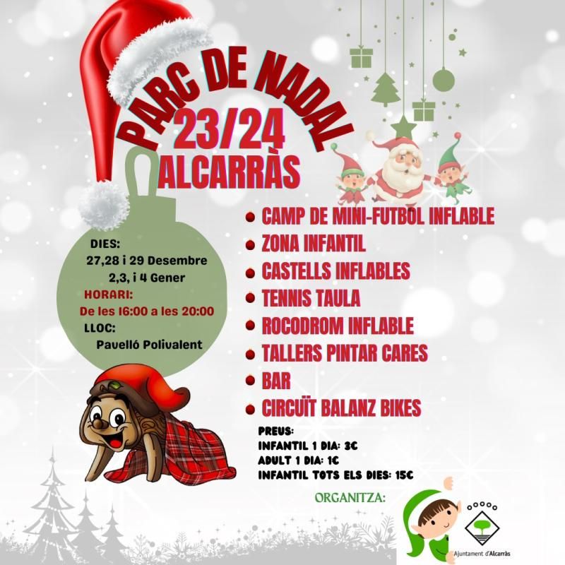 L’Ajuntament d’Alcarràs ja ho té tot a punt per a una nova edició del Parc de Nadal, al Pavelló Polivalent que, en aquesta ocasió, se celebrarà els dies 27, 28 i 29 de desembre i 2,3 i 4 de gener, de les quatre a les 8 de la tarda.