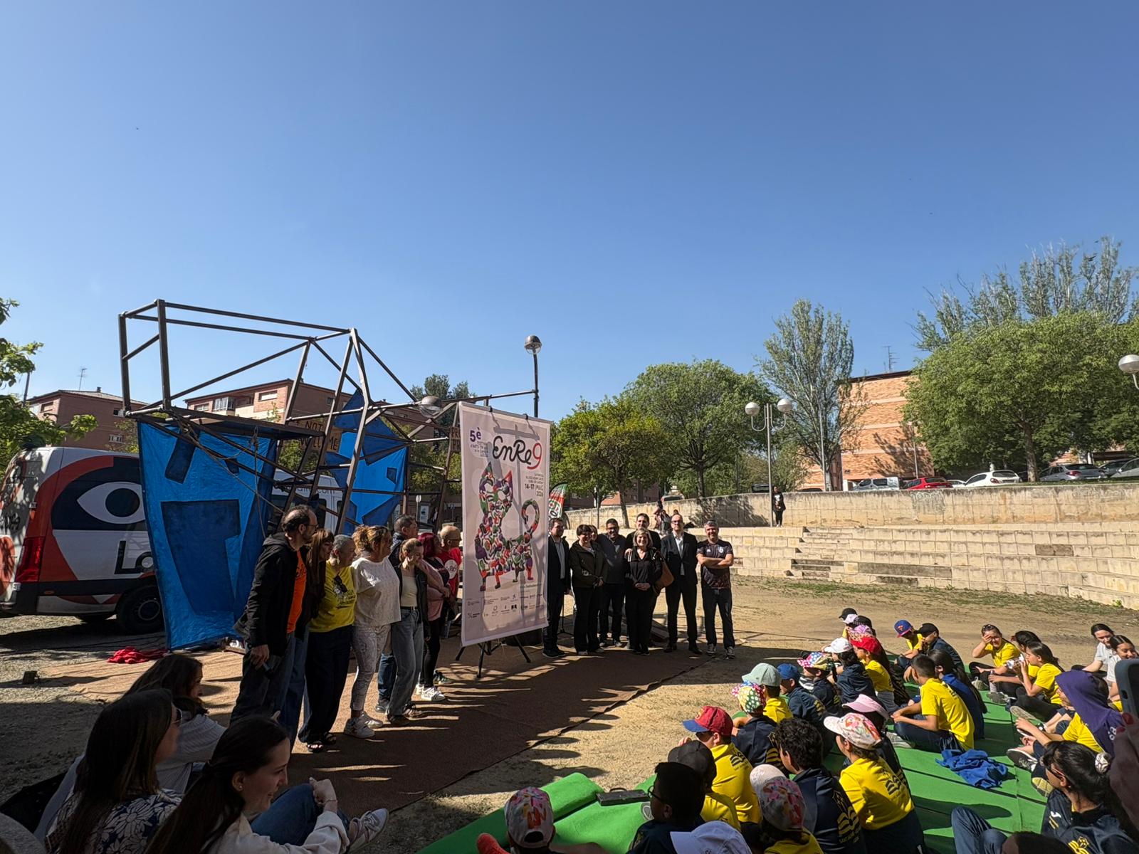 L’Enre9, el Festival d’Arts en Viu al Barri 09 de Lleida, ha presentat avui el cartell i les línies estratègiques de la seva cinquena edició, que se celebrarà del 14 al 17 de maig. L’acte ha tingut lloc a la plaça situada darrere del Centre Cívic i Comunitari de Lleida, amb l’assistència del regidor Roberto Pino, així com representants institucionals, entitats i la companyia La Baldufa.