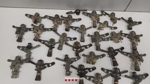 Dissabte passat, en un control preventiu a la deixalleria de Torrefarrera, els Mossos van comprovar que els dos sospitosos havien venut nombrosos aspersors que no se sabia d'on venien. A principis de setmana, la policia va esbrinar que el material intervingut al cotxe havia estat furtat d'una explotació agrícola de Suquets. A més, també es va constatar que els aspersors intervinguts a la deixalleria els havien robat divendres passat en tres explotacions de la partida Bolós, d'Almenar.