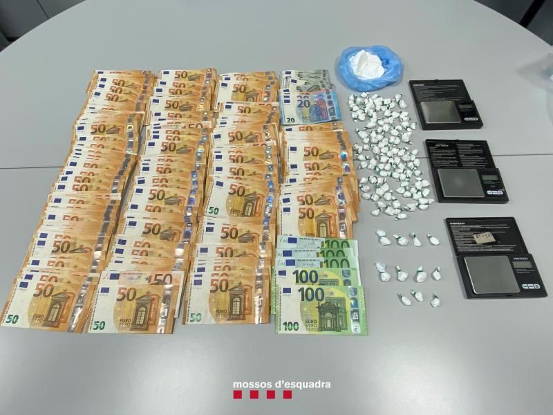Al domicili, a més de diners i droga, els agents també hi van trobar tres bàscules de precisió i altres estris per manipular les substàncies estupefaents.