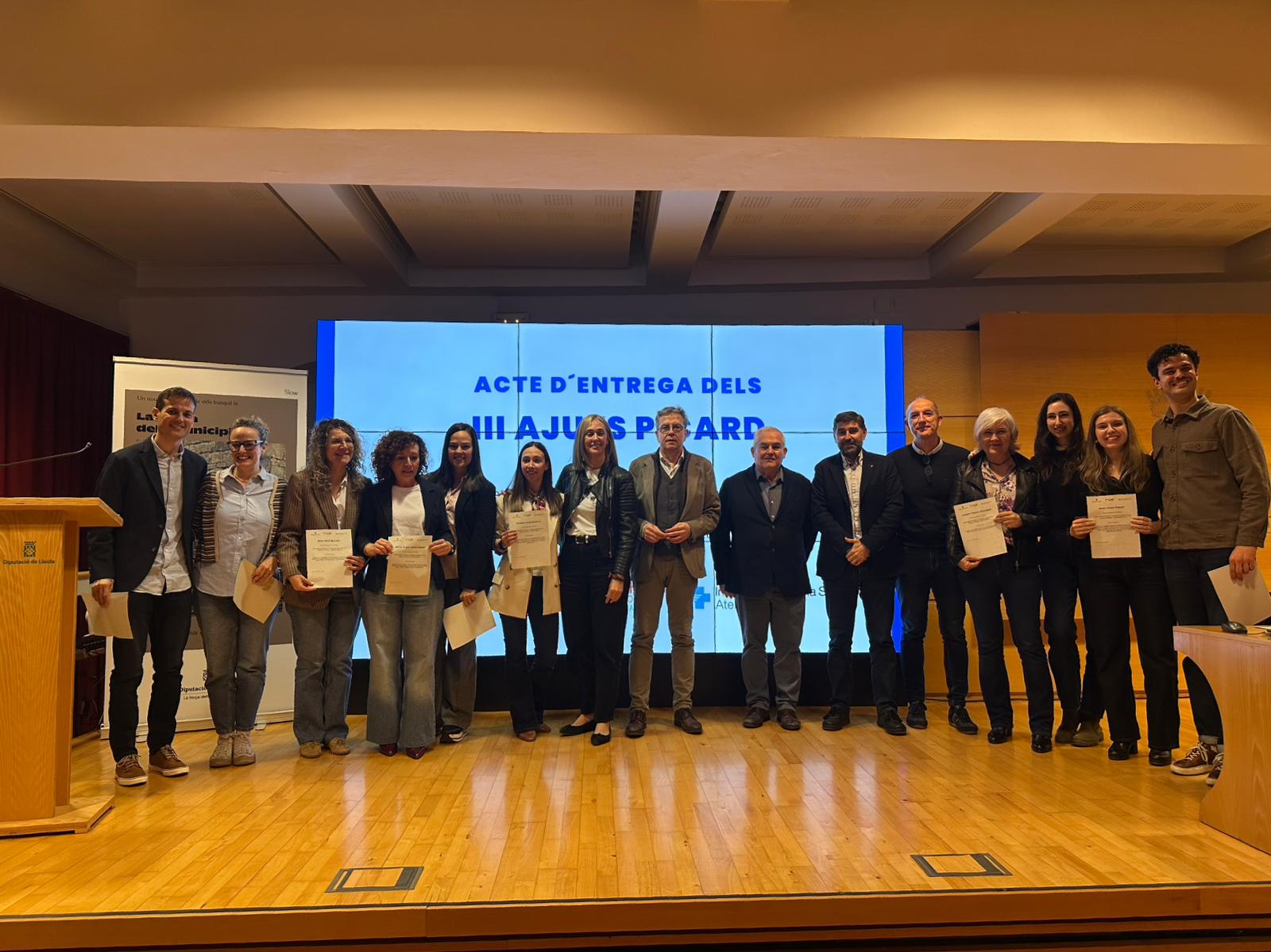 El president de la Diputació de Lleida, Joan Talarn, i el diputat de Salut i Esports, Òscar Martínez, han participat aquest dijous en l’acte de lliurament dels Premis Picard III, que s’ha celebrat a la Sala d’Actes del Palau de la Diputació, organitzat conjuntament per l’Institut Català de la Salut (ICS), l’Institut d’Investigació en Atenció Primària IDIAP Jordi Gol i la mateixa Diputació de Lleida.