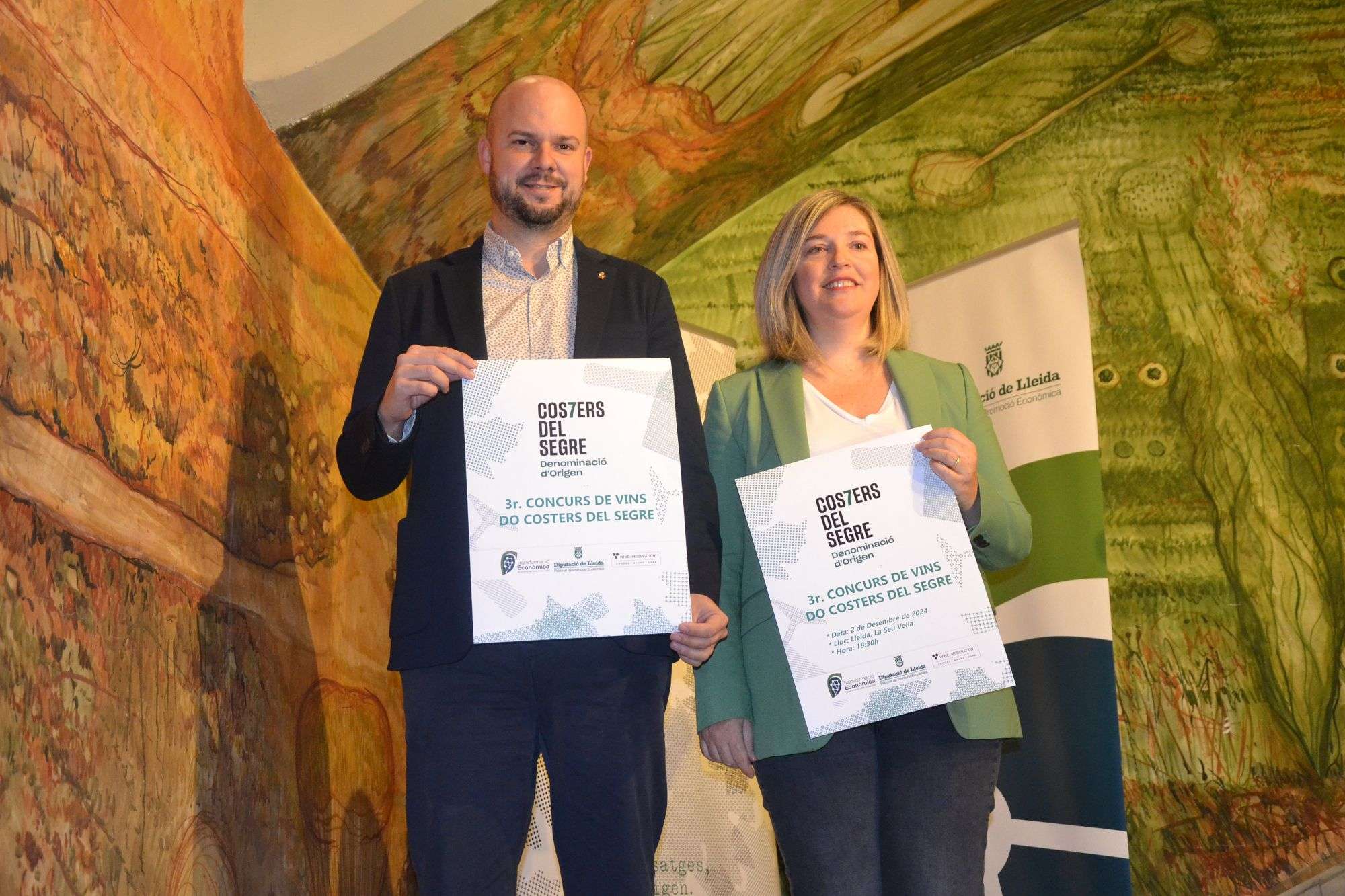 El diputat i vicepresident del Patronat de Promoció Econòmica de la Diputació de Lleida, Jordi Verdú, i la gerent de la Denominació d’Origen Costers del Segre, Núria Balagué, van presentar ahir la tercera edició del Concurs de Vins de la DO Costers del Segre, una competició oberta a tots els cellers que formen part de la denominació́ i que enguany ha reunit 140 vins de 26 cellers diferents.