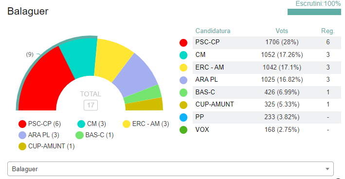 El PSC guanya a Balaguer i ERC perd la majoria absoluta