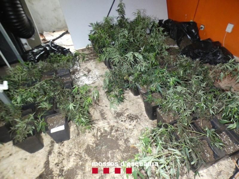 Quan els mossos hi van irrompre, van comprovar que l'habitatge tenia totes les estances habilitades pel cultiu de marihuana i les persones havien escapat per la façana entrant en un pis de la planta superior. Finalment, davant la pressió policial van sortir al replà i van ser detinguts com a presumptes autors d’un delicte contra la salut pública.