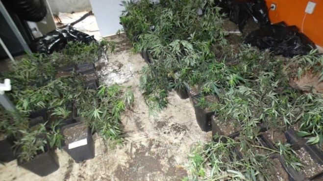 Mentre els agents es trobaven al pis van notar una forta olor de marihuana que provenia d'una de les habitacions. L’estança estava tancada amb un cadenat, però la porta no ajustava i es veien desenes de plantes, amb focus de llum i també se sentia el soroll de ventiladors.