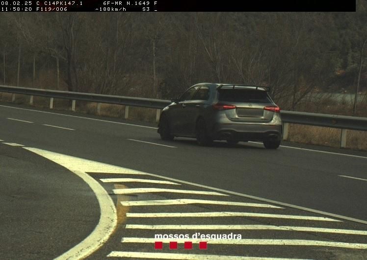 Els Mossos d'Esquadra han denunciat penalment un conductor per circular a 188 quilòmetres per hora per la C-14 en un tram de carretera limitat a 90. Un control de velocitat a l'altura del punt quilomètric 147,1 de la C-14, dins del terme municipal de Peramola, va detectar la infracció dissabte passat pels volts de les dotze del migdia.