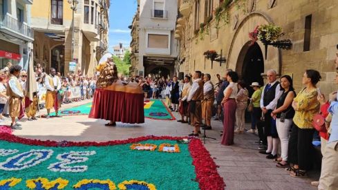 La portaveu del grup d'Esquerra Republicana a la Paeria, Jordina Freixanet, i la regidora d'ERC Anna Costa, han assistit aquest diumenge als actes de commemoració de la Festa Popular del Corpus, que omple els carrers del centre de #Lleida de les tradicionals catifes de flors. Ha estat aleshores quan el president del Patronat del Corpus, Enric Figueres, ha anunciat que havien traslladat al Govern de la Paeria la voluntat de declarar la Festa del Corpus d'Interès Local.