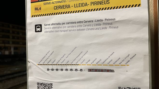 El servei del tren RL4 ha estat restablert íntegrament aquest dissabte, tot i que la represa s'ha produït amb un retard respecte a l'horari inicialment previst a causa d'una incidència operativa. Aquesta situació ha obligat a establir un servei alternatiu amb autobusos entre les estacions de Lleida-Pirineus i Cervera durant unes hores.