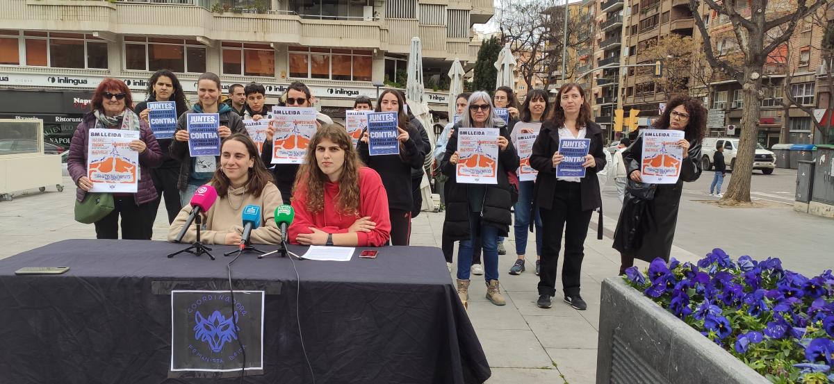 Lleida comença a organitzar-se pel 8M. La Coordinadora Feminista de Lleida va presentar ahir els diferents actes que ha preparat per a aquest dissabte 8 de març, on l'acció més important serà la manifestació programada a les 18 h i que sortirà des de la Plaça 8 de març, on precisament ahir una vintena de dones de la coordinadora van fer una presentació dels actes reivindicant un 8M sota el lema "Juntes, combatives i organitzades contra l'extrema dreta i la precarietat".