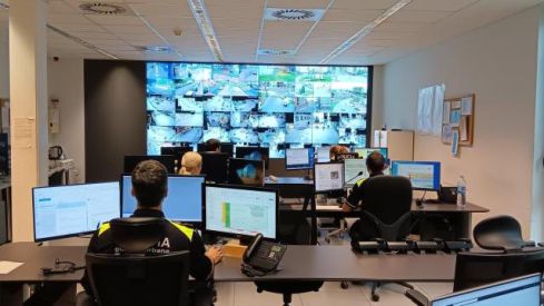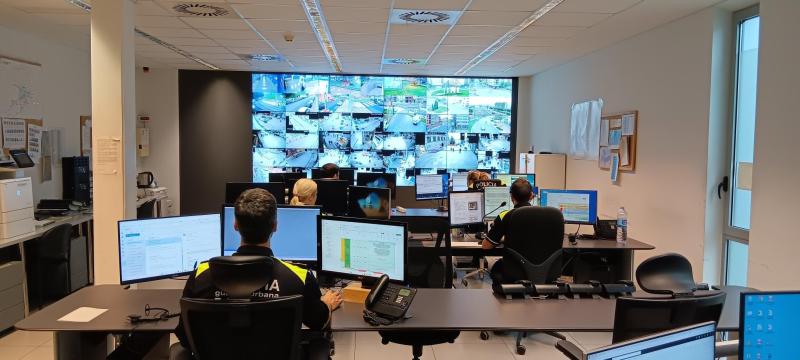 La sala compta amb una gran pantalla des d’on es visionen les imatges de les diferents càmeres de seguretat que hi ha a la ciutat. Cal recordar que recentment s’han instal·lat sis noves càmeres entre la plaça Paeria i el carrer Sant Antoni, amb la qual cosa tot l’Eix Comercial està vigilat per càmeres. Actualment la ciutat de Lleida disposa d’un total de 64 càmeres. En la propera fase se’n col·locaran 20 més.