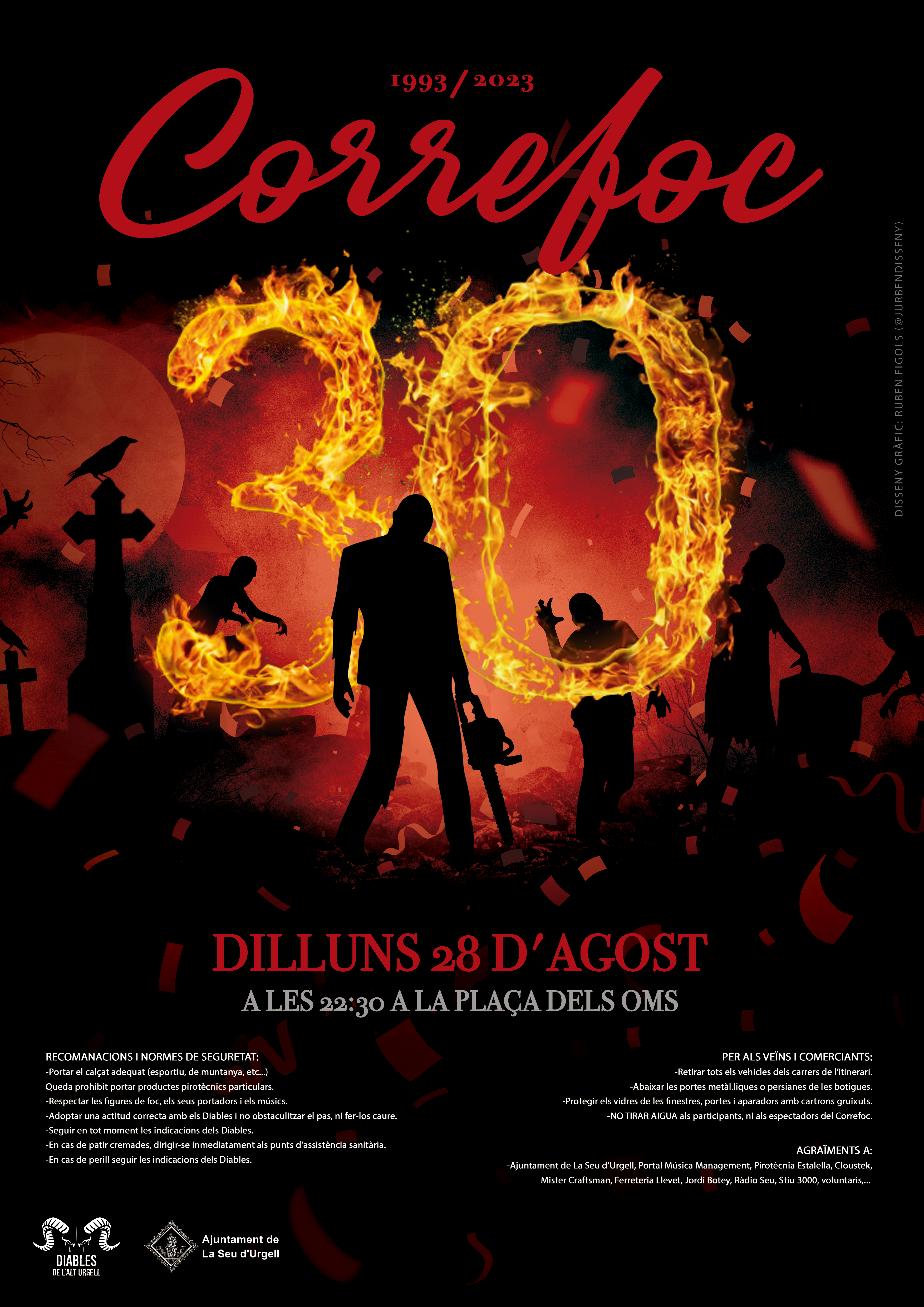 El Grup de Diables de l'Alt Urgell es prepara per encendre els carrers de la Seu d'Urgell amb un correfoc espectacular en honor al seu 30è aniversari. L'esperat esdeveniment tindrà lloc el 28 d'agost a les 22:30 h a la plaça dels Oms. La nit promet ser màgica i plena de significat, amb un espectacle sorprenent basat en la llegenda dels 30 anys, tot seguit es començarà al correfoc pels carrers més antics de la ciutat i s’acabarà a la mateixa plaça dels Oms amb un Piromusical.