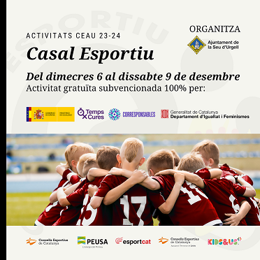 L’Ajuntament de la Seu d’Urgell organitza, a través del Consell Esportiu de l’Alt Urgell, un casal lúdic-esportiu gratuït que tindrà lloc a la zona esportiva municipal pel pont del desembre, és a dir, del 6 al 9 de desembre (ambdós inclosos).
