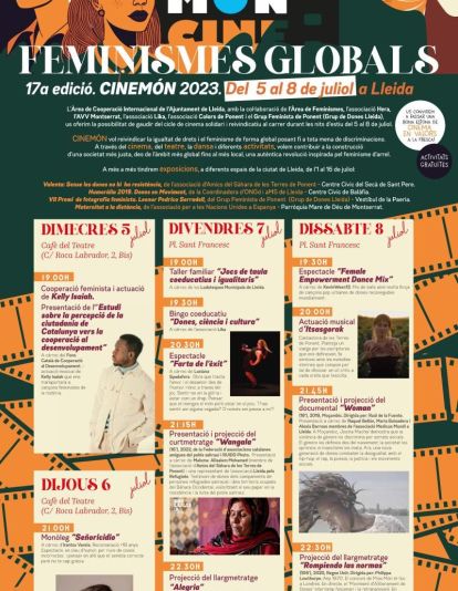 En aquesta 17a edició, l’àrea de Cooperació Internacional, amb la col·laboració de Feminismes, ha preparat el programa d’activitats amb diverses entitats de la ciutat, per sumar esforços en la defensa dels drets de les dones arreu. A més del treball conjunt amb entitats habituals, en el tema d’enguany hi han participat l’associació Hera, l’AV Montserrat, l’associació Lika, l’associació Colors de Ponent i el Grup Feminista de Ponent (Grup de Dones Lleida). La ubicació central del cicle serà, com en les darreres edicions, a la plaça de Sant Francesc, i s’incorpora el Cafè del Teatre de l'Escorxador, on es faran activitats paral·leles.