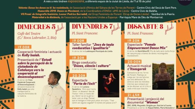 En aquesta 17a edició, l’àrea de Cooperació Internacional, amb la col·laboració de Feminismes, ha preparat el programa d’activitats amb diverses entitats de la ciutat, per sumar esforços en la defensa dels drets de les dones arreu. A més del treball conjunt amb entitats habituals, en el tema d’enguany hi han participat l’associació Hera, l’AV Montserrat, l’associació Lika, l’associació Colors de Ponent i el Grup Feminista de Ponent (Grup de Dones Lleida). La ubicació central del cicle serà, com en les darreres edicions, a la plaça de Sant Francesc, i s’incorpora el Cafè del Teatre de l'Escorxador, on es faran activitats paral·leles.