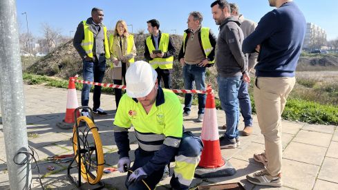 La primera tinenta d’alcalde i regidora d’Agenda Urbana, Begoña Iglesias, acompanyada del regidor de barri, Jackson Quiñónez, ha visitat avui les tasques de renovació de l’enllumenat al carrer Àngel Moncusí, a la zona de Copa d’Or. Iglesias ha destacat que la renovació de l’enllumenat forma part de l’aposta del govern municipal per la millora de l’espai públic de la ciutat i que permetrà “millorar el confort lumínic i la sensació de seguretat, a la vegada que es promou la sostenibilitat i l’eficiència energètica”.