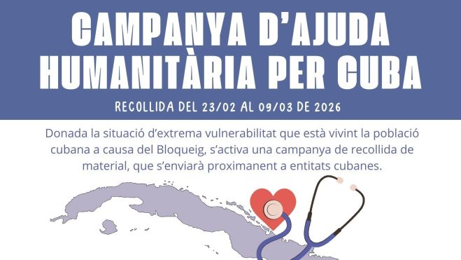 La Regidoria de Cooperació, en col·laboració amb el Casal d’Amistat amb Cuba de Lleida, ha posat en marxa una campanya solidària de recollida de material per donar suport a la població cubana, afectada per una situació d’extrema vulnerabilitat a causa del bloqueig imposat pels Estats Units.